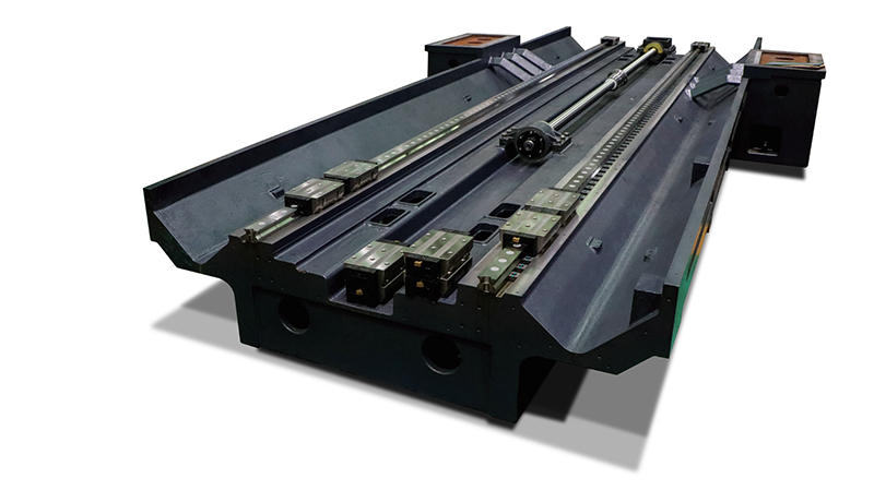गैन्ट्री मशीनिंग सेंटर की टेबल मूल रूप से आयताकार होती है। टेबल, बेड, कॉलम, बीम और रैम जैसे बड़े और भारी कास्टिंग कच्चे लोहे या वेल्डेड भागों से बने होते हैं। कास्टिंग की आंतरिक गुहा उन्नत डिज़ाइन वाली मधुकोश मिश्रित संरचना है, जिसे एजिंग और सेकेंडरी टेम्परिंग द्वारा उपचारित किया गया है ताकि अवशिष्ट आंतरिक तनाव को दूर किया जा सके और सामग्री को स्थिर किया जा सके, जिससे वर्कपीस की मशीनिंग सटीकता और मशीन टूल के जीवनकाल की स्थिरता सुनिश्चित हो सके।