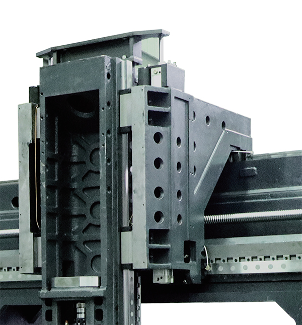 स्पिंडल हेड में साइड-माउंटेड बॉलस्क्रू डिज़ाइन है, जो स्पिंडल से बीम की दूरी को कम करता है और संरचनात्मक कठोरता को बढ़ाता है।
